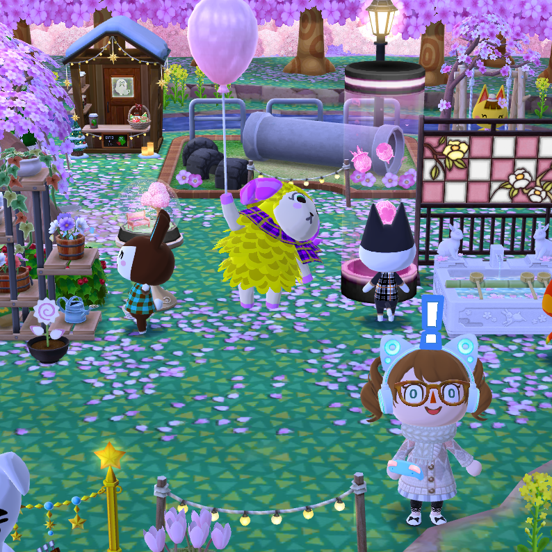 The clothing in this game is probably my favorite part. I love making outfits with all the unique items in this game. In New Leaf, I loved collecting handheld items like the ice creams, balloons, bubble wands, and more... Pocket Camp takes this to a new level! My character can hold books, animals, stuffies, swords, and so much more. The creativity of each item is delightful, and I look forward to collecting each month's selection.